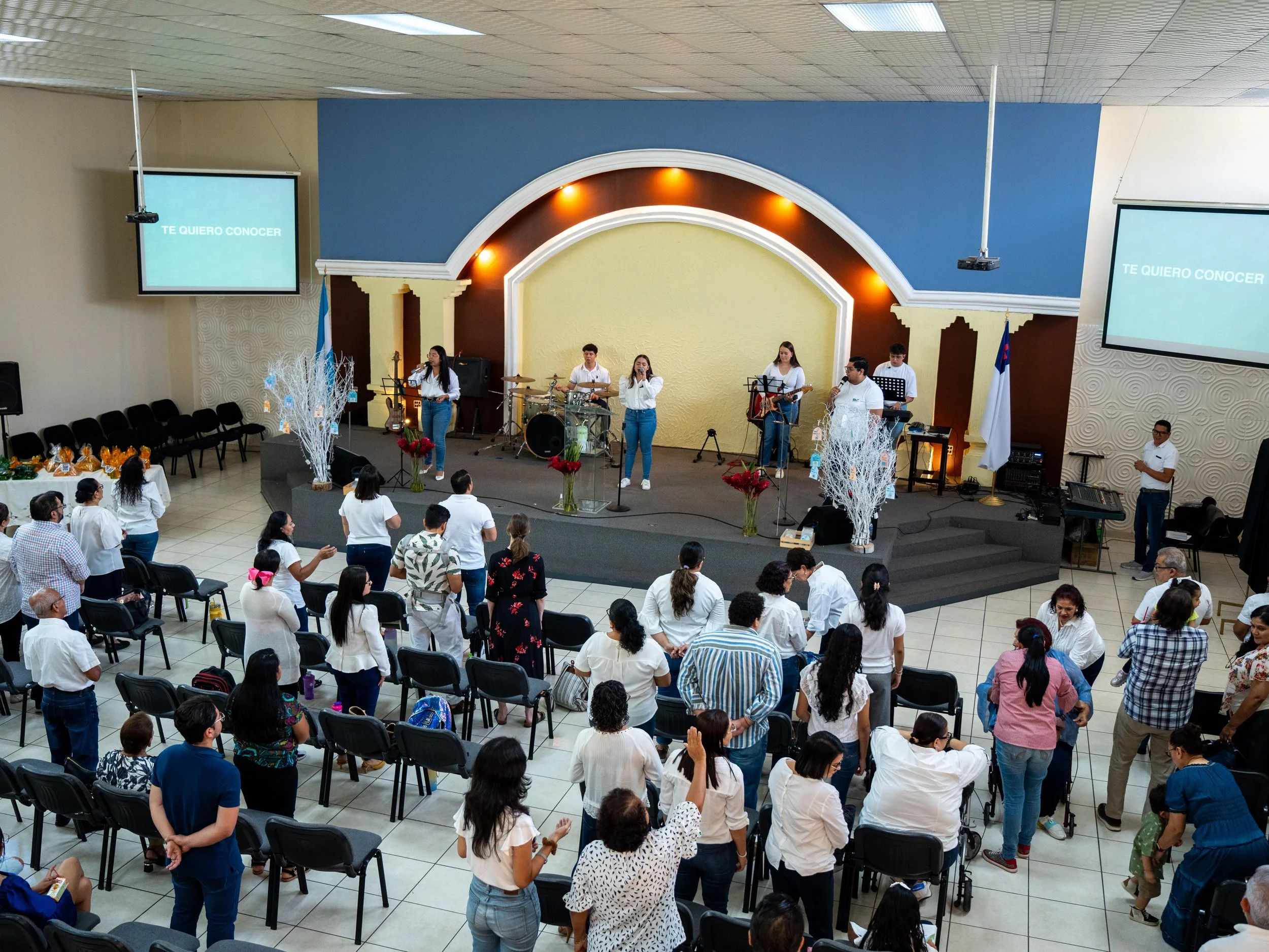Debido al crecimiento de la congregación, se trasladó desde un jardín de infancia a la cancha de baloncesto de la escuela El Japón, y posteriormente a una de sus aulas.